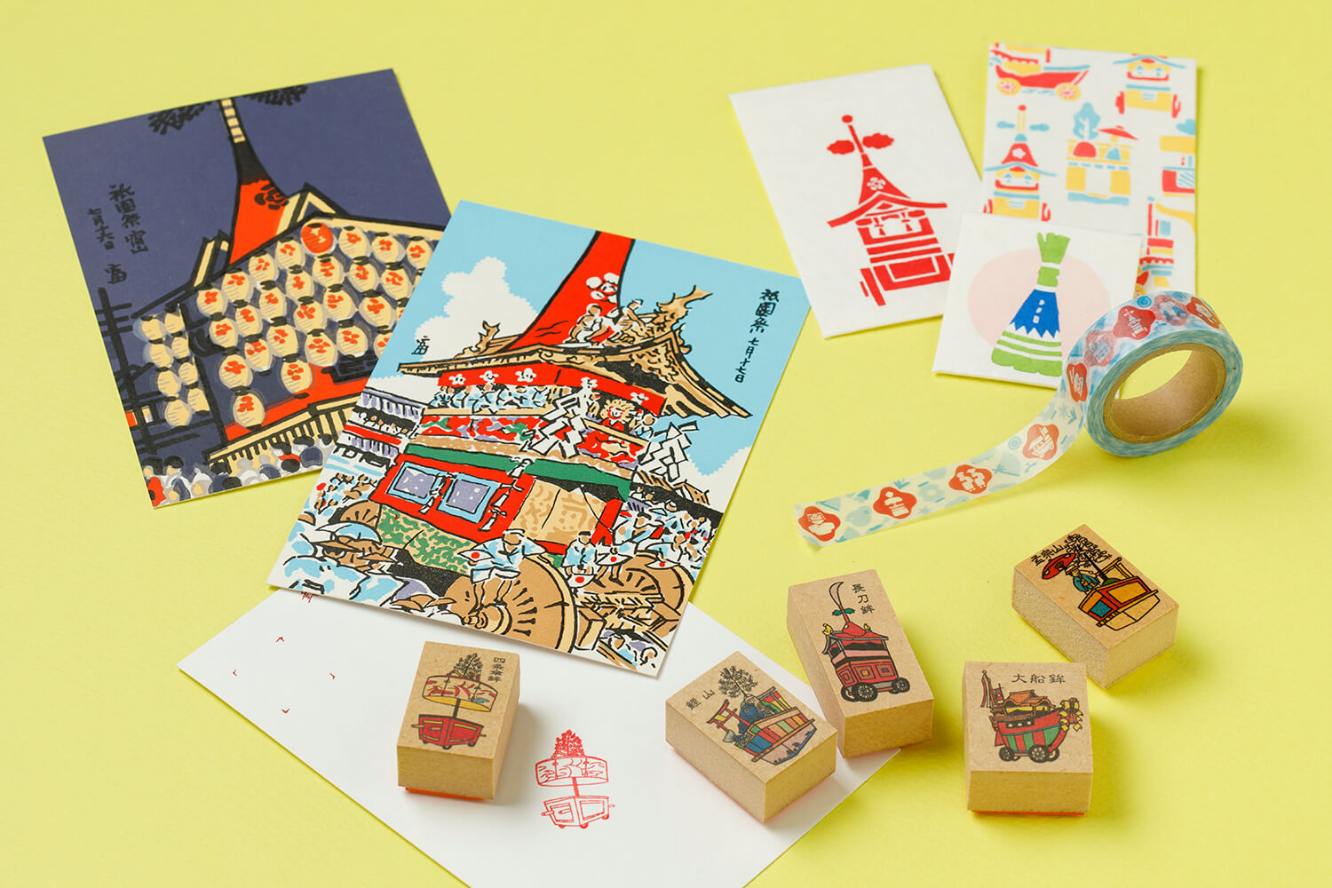 即使是日常文具和配件,也能找到很棒的設計。 描繪充滿活力的山穗行列與宵山的明信片由位於寺町街的日本文具店「鳩梨堂」製作,該店經營超過350年。 夏季旅遊建議前往。 在新町洞四條的歷史悠久的印章店「京都印排」可購買共34枚山穗郵票(可從一枚購買)。 遮蔽膠帶和pochi包來自「少女祇園祭」計畫,該計畫以「傳統必須可愛」為主題發展。 它由當地北町的一家設計公司負責,而流行五州的書籍也成為熱門話題。