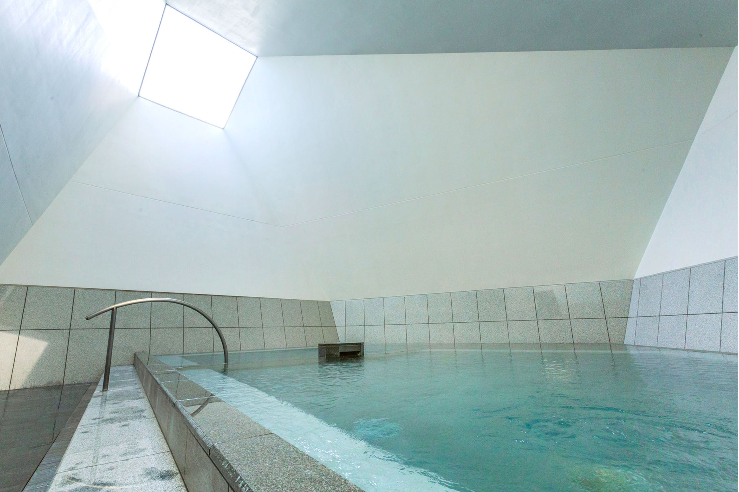 光影令人印象深刻的澡堂。 如果天氣明亮,您可以在反射光線的白色空間中享受沐浴