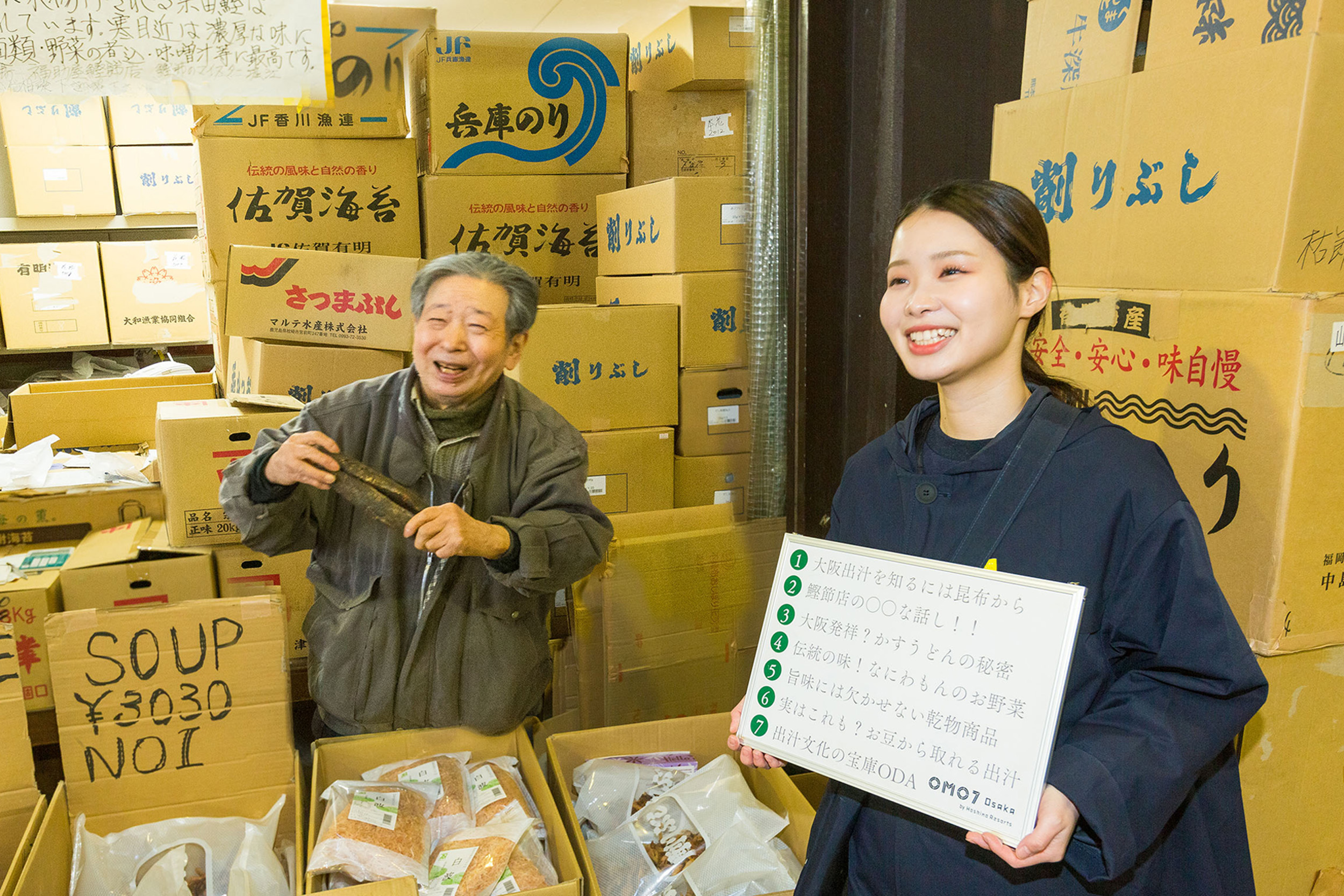 參觀大阪批發市場,距離飯店約15分鐘步行,了解大阪的「dashi文化」。 當然,也可以在店裡購買。 最後,在超市裡享受購物,裡面排滿了高湯和調味料。