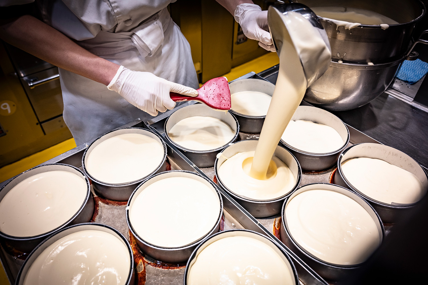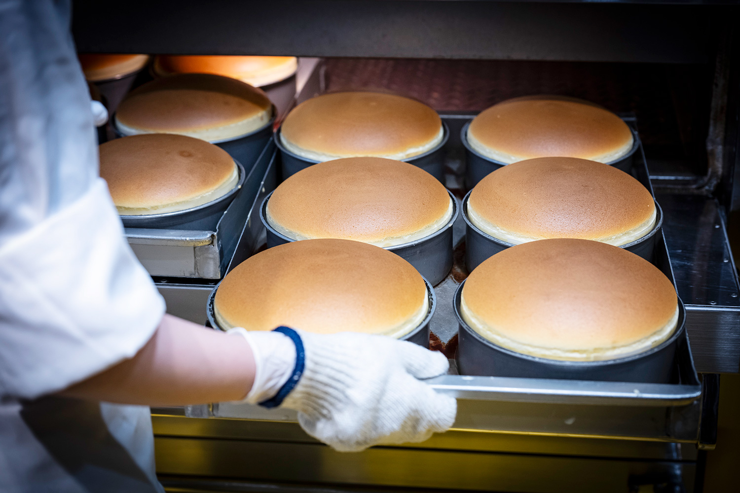 浪速長銷的「新鮮出爐的起司蛋糕」最大的特色是口感蓬鬆透氣。 起司的清爽風味和淡淡的甜味會讓你一下子就吃完了。 我們探索了吸引許多人的輕盈質地的秘密,以及它是如何在擁有開放式廚房的難波總店創造出它的美味。