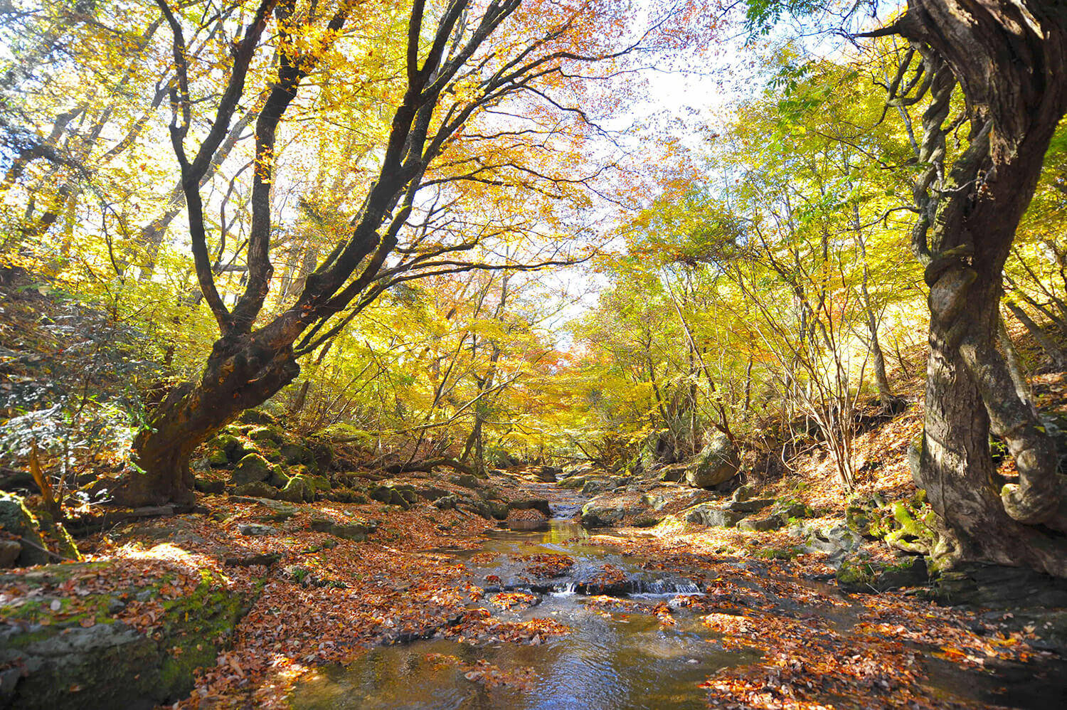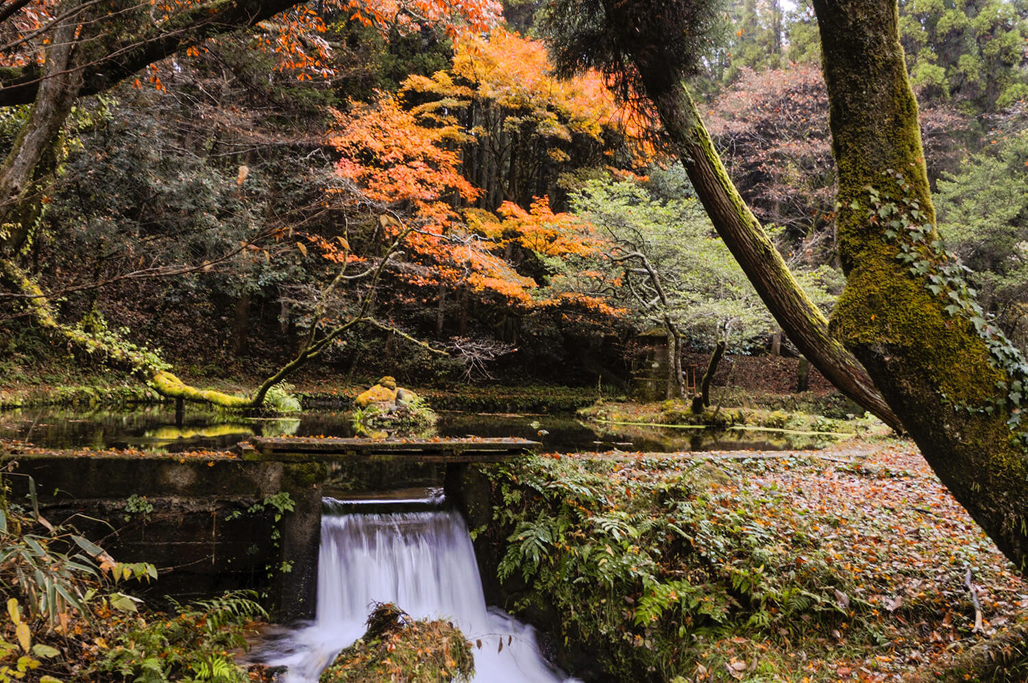 紅葉季節,紅黃相間的樹木倒映在春天的池塘裡,神秘的倒掛秋葉非常上鏡。 沿著通往池塘的長廊,泉水流過原始森林,可以感受到大自然的力量。 何不感受森林浴的感覺呢?