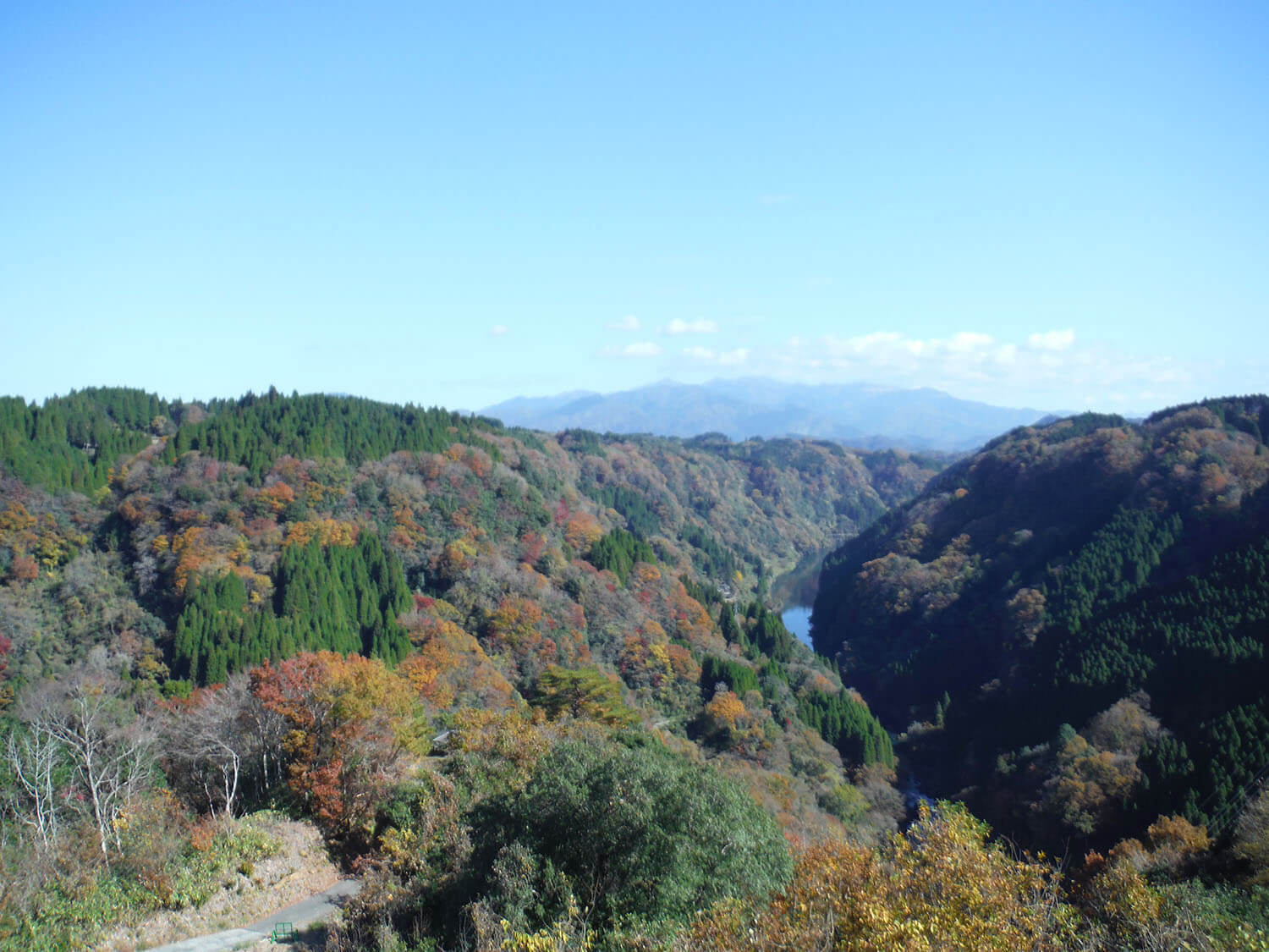 從可以欣賞到山谷全景的長崎花展望台,您可以欣賞到紅葉盛開的山谷、美麗的五瀨川和桑之內水壩之間的對比。 此外,位於展望台長廊下的「Funa no Kuchisui Gen」也是紅葉秘境景點之一。