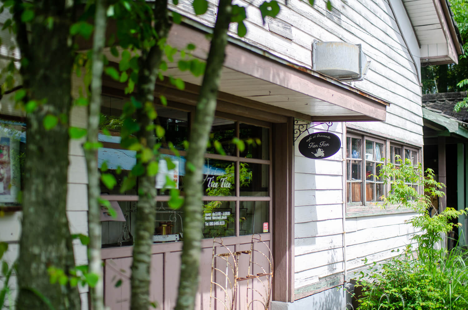 距離阿蘇神社約5分鐘車程,這家咖啡館是一棟翻修過的木造學校,建於明治時代建造的女子裁縫學校舊址上。 由熱愛法國的老闆收藏的古董家具被擺放,營造出懷舊的空間。