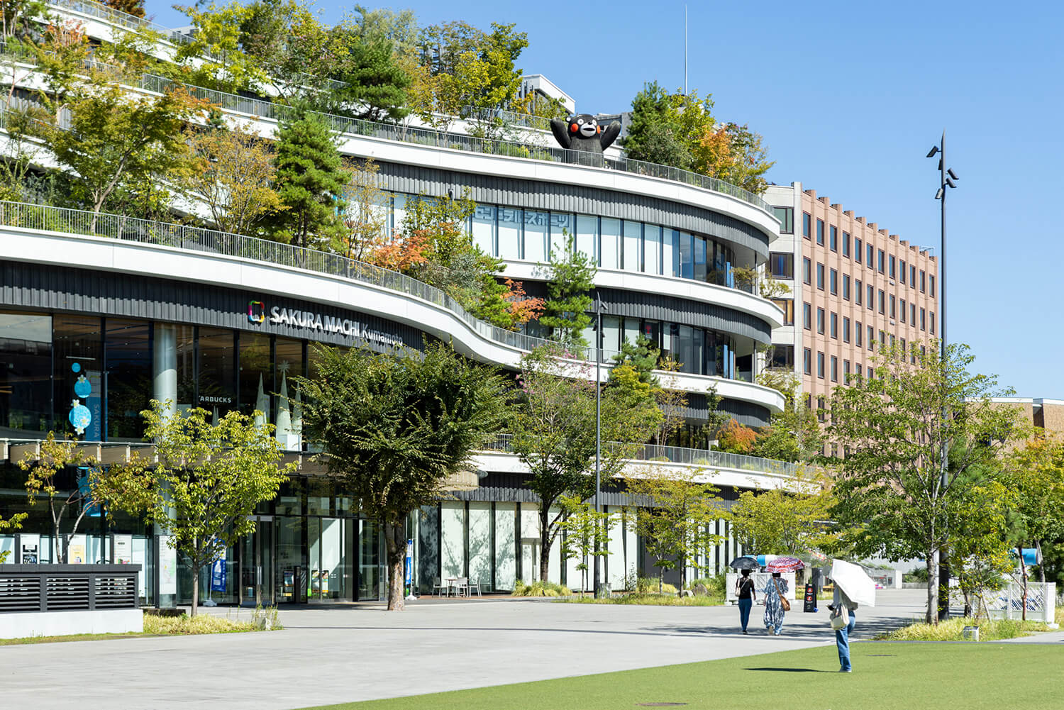 佔地約3,000平方米的廣闊場地由孩子們可以玩耍的屋頂公園、舉辦活動的屋頂球場以及以熊本藩主細川先生曾經在此地建造的花園為靈感的“櫻町花園”組成。 整個場地種植了梅子、垂枝櫻、日本楓樹、紫薇等多種植物。
