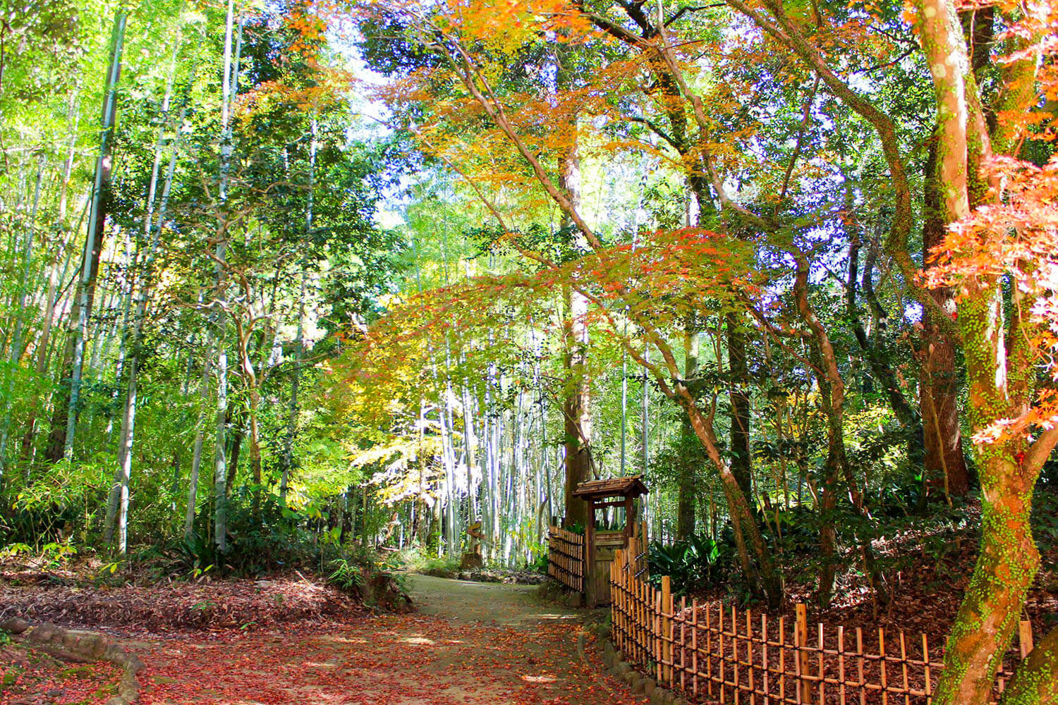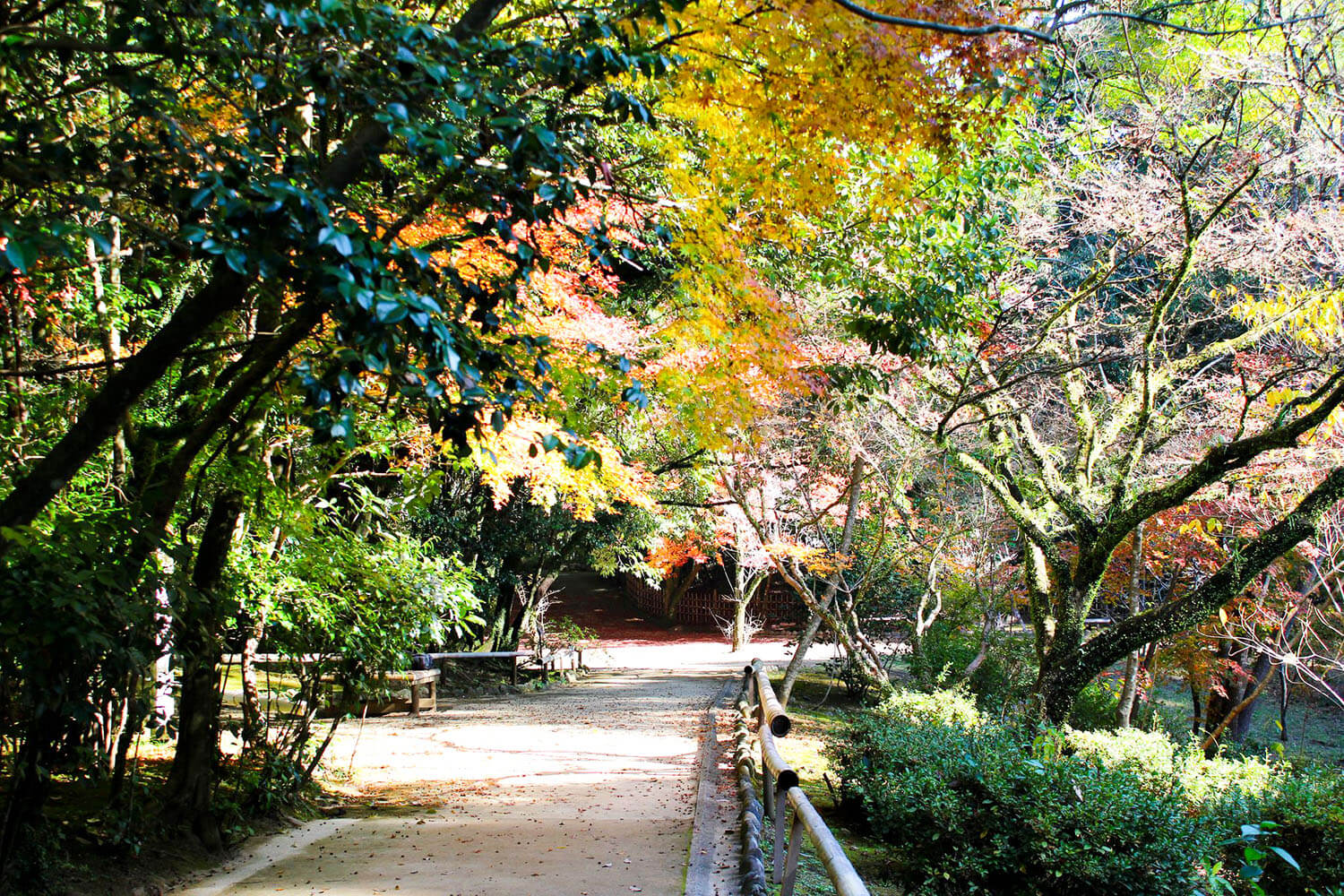公園內有泉神社,供奉細川家歷代封建領主,還有一處「長壽之水」泉水,據說飲用可長壽。 更重要的是茅草屋頂的「Kokinden Junoma」。 該建築於1912年(大正元年)從京都皇宮遷至長岡天滿宮,從榻榻米房間望出庭園,宛如一幅畫。 你也可以在室內享用抹茶和茶點,建議散步時休息一下。 秋天時,公園裡的樹木會變紅,你可以享受優雅的秋葉採摘。