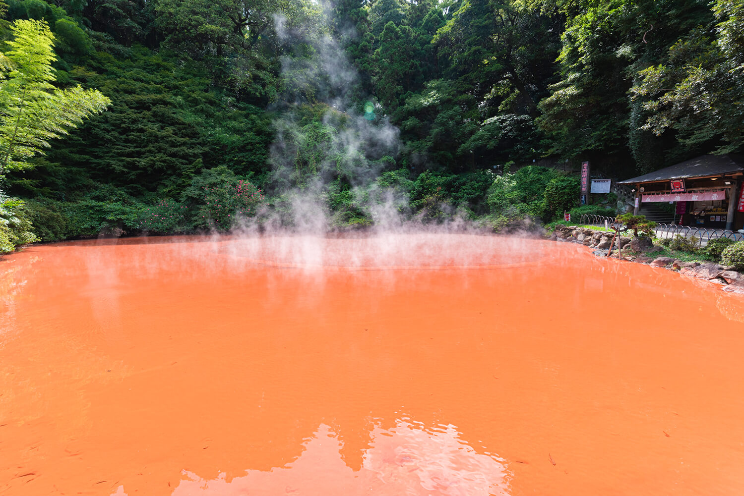 別府有七個不同的別府。 有些地獄裡你可以欣賞到平常不常見的色彩,例如以鈷藍色美感吸引人們的「海地獄」、被森林包圍的紅色池塘冒出蒸氣的「血池地獄」,以及浪漫的「白池地獄」,閃爍著白色和淺藍色的光芒。