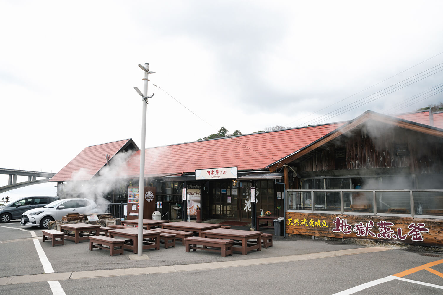 這個區域的核心之一是商店。 顧名思義,著名的「地獄蒸布丁」是用熱溫泉蒸氣蒸布丁製成的料理。 材料很簡單:蛋、牛奶、鮮奶油和糖。 它帶有苦甜的焦糖味和甜甜的布丁味,深受當地人到遊客喜愛。