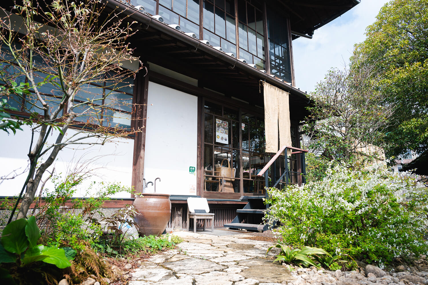 一家位於以溫泉聞名的神和地區的商店。 這棟建築是明治時期的建築,外觀雄偉。 這座擁有美麗季節性植物與樹木的花園,也是你想要時時欣賞的景觀。 店內透過玻璃看到的綠意與陽光令人愉悅,時間悠閒流逝。