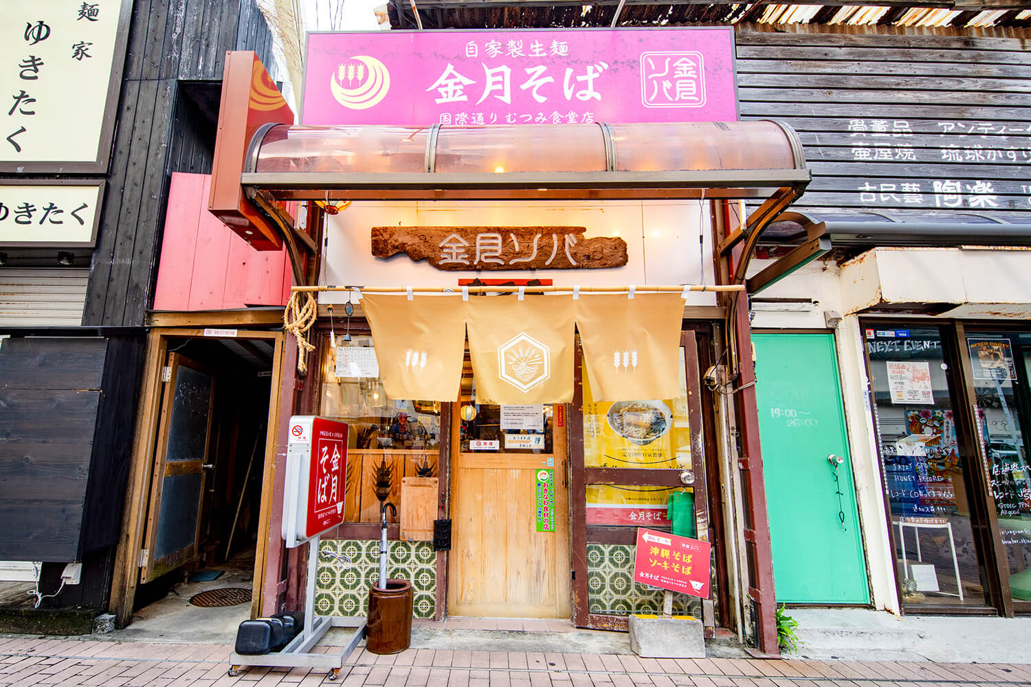 那霸分店「金月蕎麥麵」在讀谷村設有主要店面。 我們非常重視本地生產、供當地消費,提供使用多種縣產食材製作的沖繩蕎麥麵。 自製新鮮麵條口感有嚼勁,採用沖繩小麥「島木神山」製成。 淋上沖繩蕎麥麵的五花肉是用縣產豬肉製成,厚重的炸豆腐則是用縣內豆腐店購買的國產豆腐製成。 這碗香氣撲鼻的金黃湯底,用8種魚片製成,風味十足,與新鮮麵條和五花肉完美搭配。