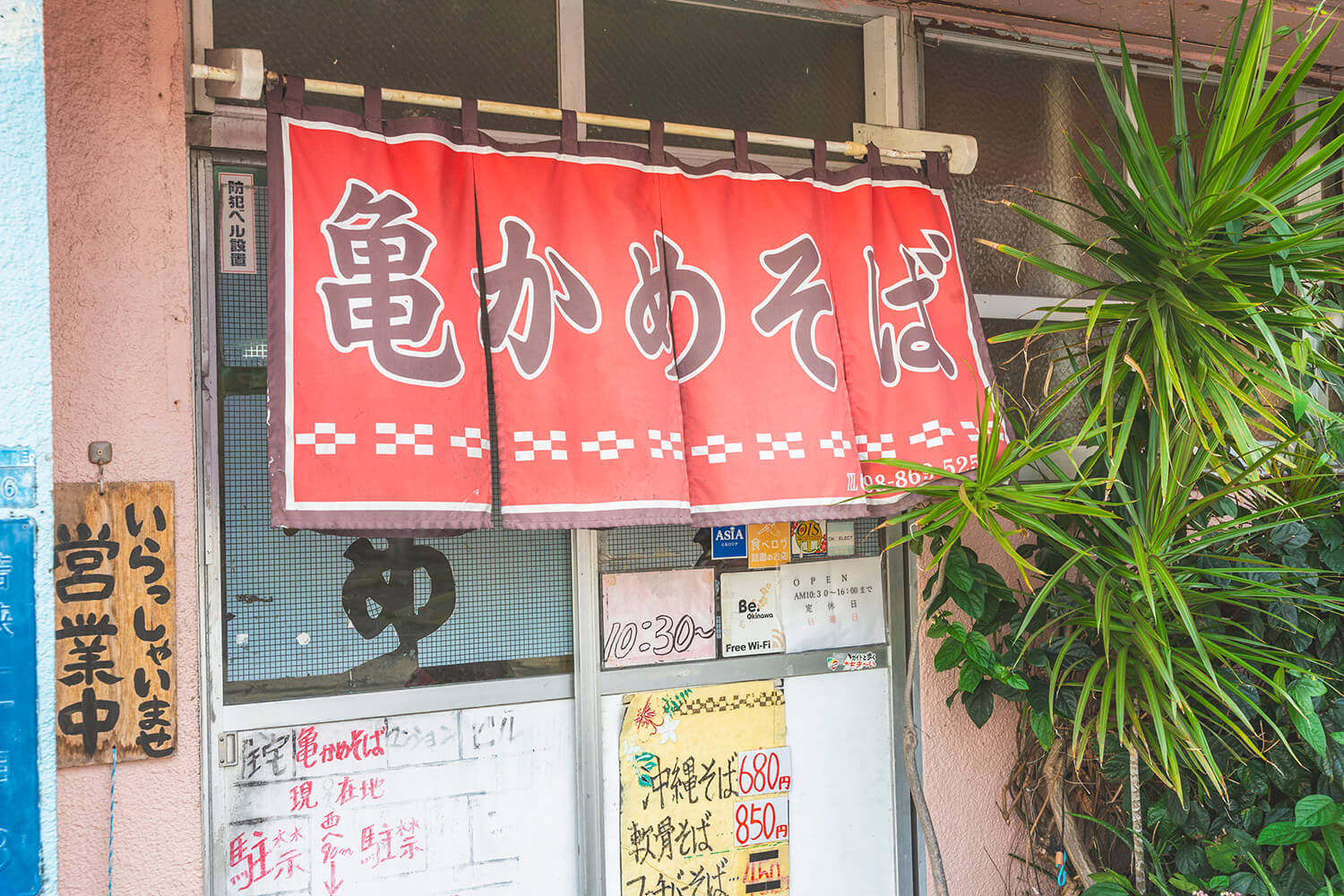 位於那霸市若狹地區安靜住宅區的老字號店。 它有作為龜濱麵廠直營店開業的歷史,使用同一家麵廠的麵條,硬度適中,容易進入喉嚨。