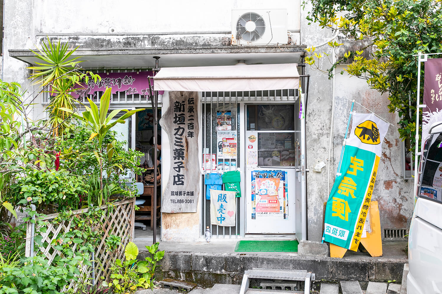 新垣新雲宿木家族的老字號點心店,他在琉球王朝時期擔任菜刀。 所有產品均為手工製作,同時秉承上新垣的教義,這也是店名“過去的味道絕不能改變”。 首里城被燒毀之前,它曾作為連鎖店的茶點供應。