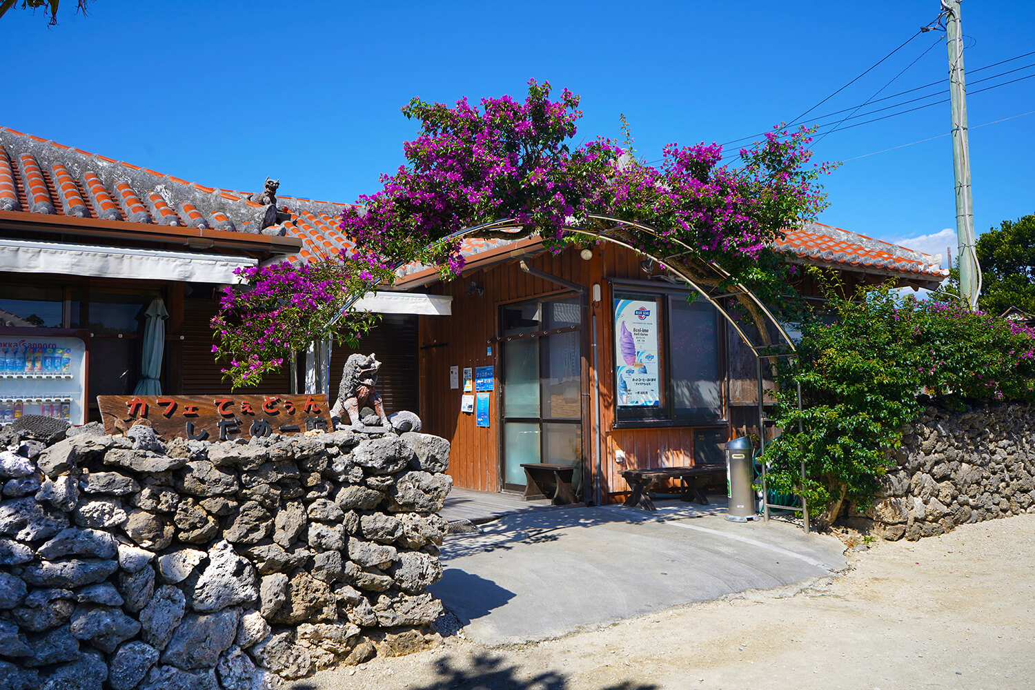 它是竹竹富島上唯一一家二樓有店的店,窗外是一座鋪著紅瓦屋頂的村莊。 從外觀看起來像私人住宅,但當你上樓進入二樓入口時,會發現一個明亮的空間。 最初,這裡是一間旅館,但屋主的女兒和妻子自行改造內部,並將其改建成一家咖啡館。 你可以感受到細節的用心,例如灰泥牆壁和混凝土天花板。 還有豐富的甜點和冰沙,是騎車時完美的休息場所。