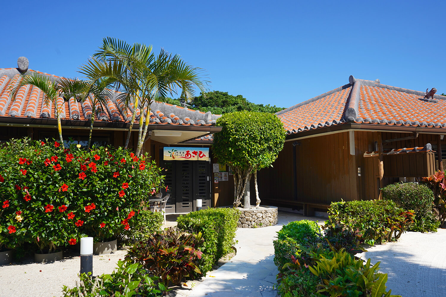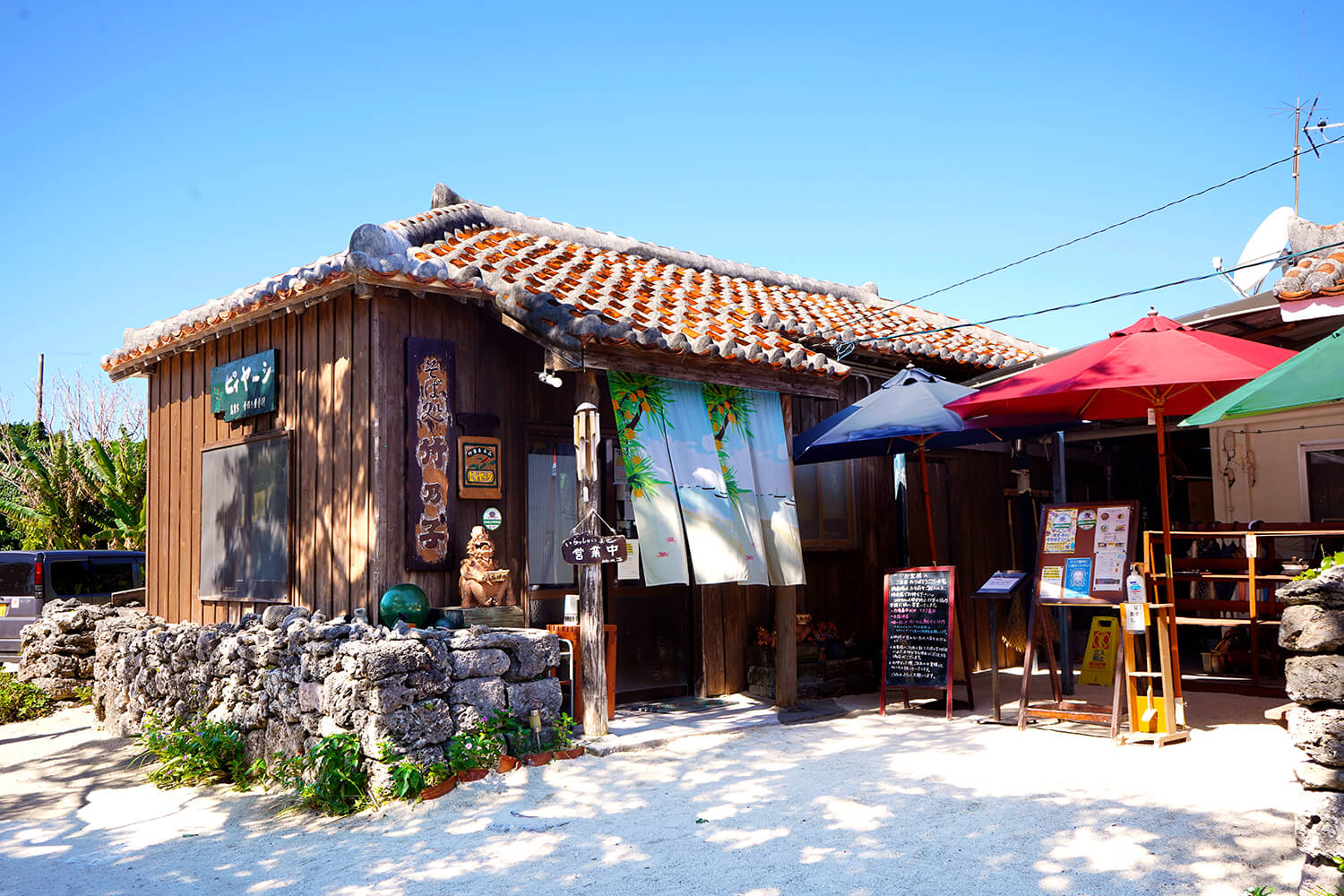 位於「竹富郵局」附近,是島上最大的餐廳。 你可以享用用在地食材手工製作的豐盛料理。 雖然有標準菜單如套餐和「八重山蕎麥麵」,但「美咲牛肉漢堡牛排與竹富島蝦炸蝦套餐」特別受歡迎。 你可以享用以石垣島美咲牛肉製成的鬆軟漢堡牛排,以及島上蝦的濃郁甜味。 此外,還有一份適合素食者,適合喜歡炸海鮮的素食者,例如在附近海域捕獲的白魚(gulukun)、炸浸泡島嶼蔬菜,以及一盤炸島嶼豆腐湯底。