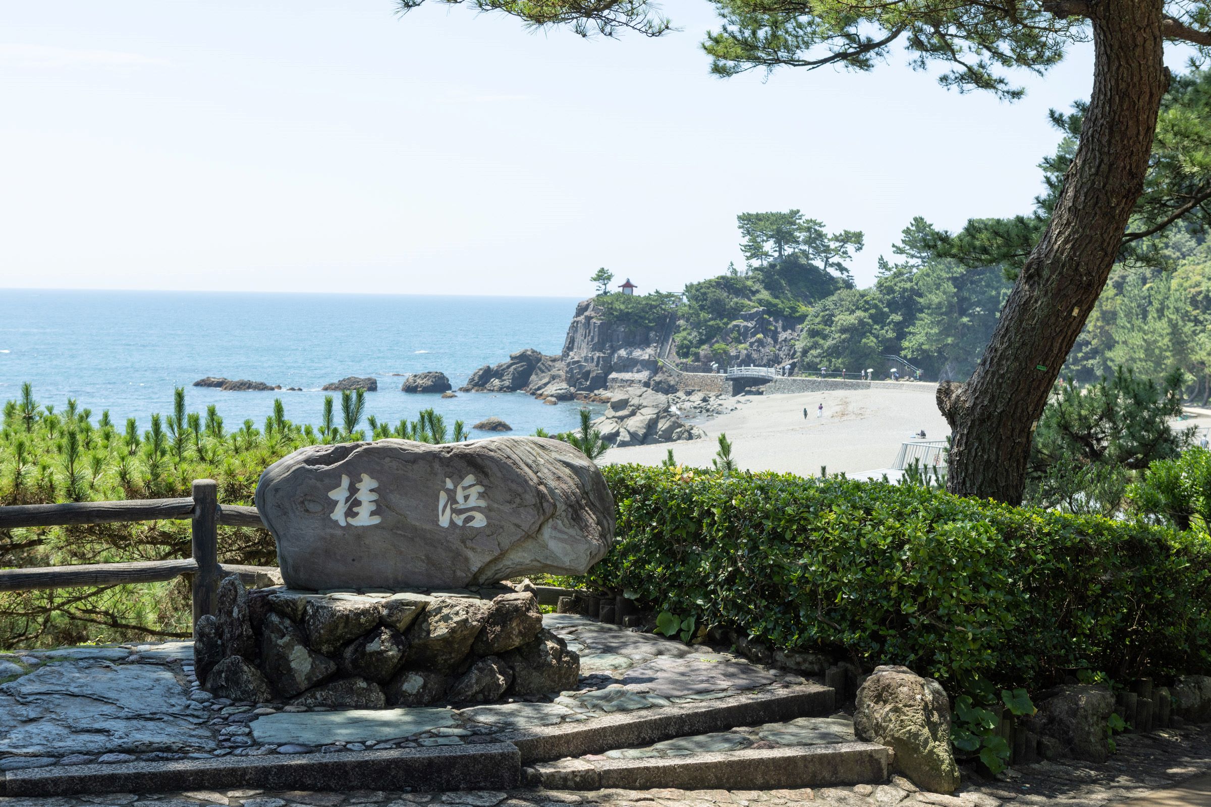 高知縣代表性景點之一「桂海灘」。 美麗的沙灘呈弓形展開,週邊地區被維護為“桂葉公園”。